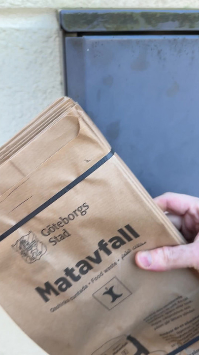 0:04 You collect the special biowaste bags for free. 0:14 The food waste is thrown in a separate bin and then a separate container.