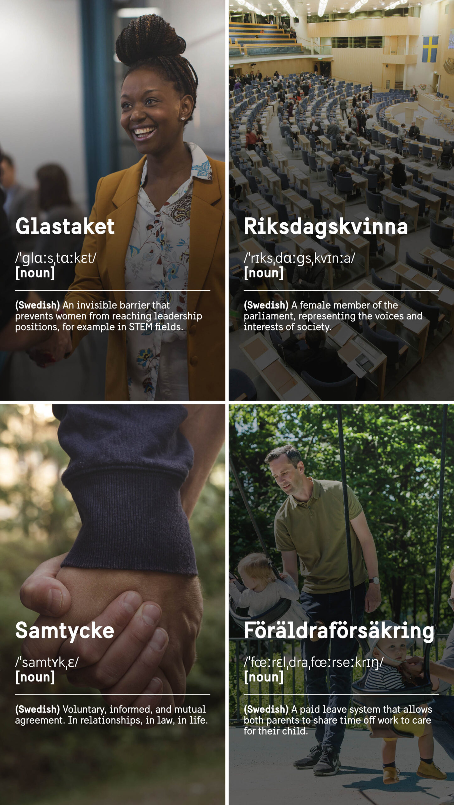 Parental leave and economic equality How to use the material This post for social media is about parental leave and gender equality. You can use the material on Women's Day or on other occasions to talk about equality in Swedish society.