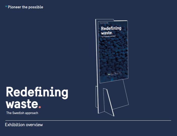 ‘Redefining waste’ exhibition How to use the exhibition This exhibition can be used to raise interest among those who are not yet familiar with Swedish waste management. The accompanying booklet goes more in depth for those who already have an interest and would like to know more. Apply to use the exhibition and find more material in the toolkit Redefining waste .