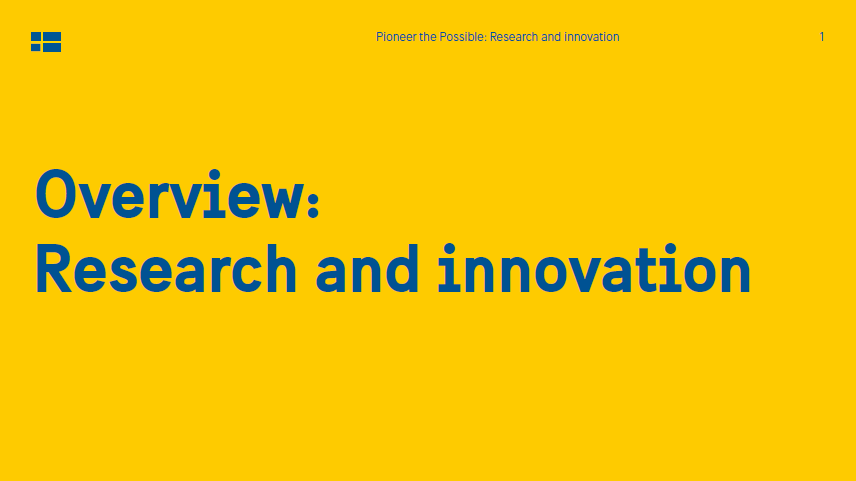 ‘Research and innovation’ exhibition How to use the exhibition This exhibition is about Sweden's research and innovation ecosystem. Apply to use the exhibition and find more promotional material in the toolkit Research and innovation .