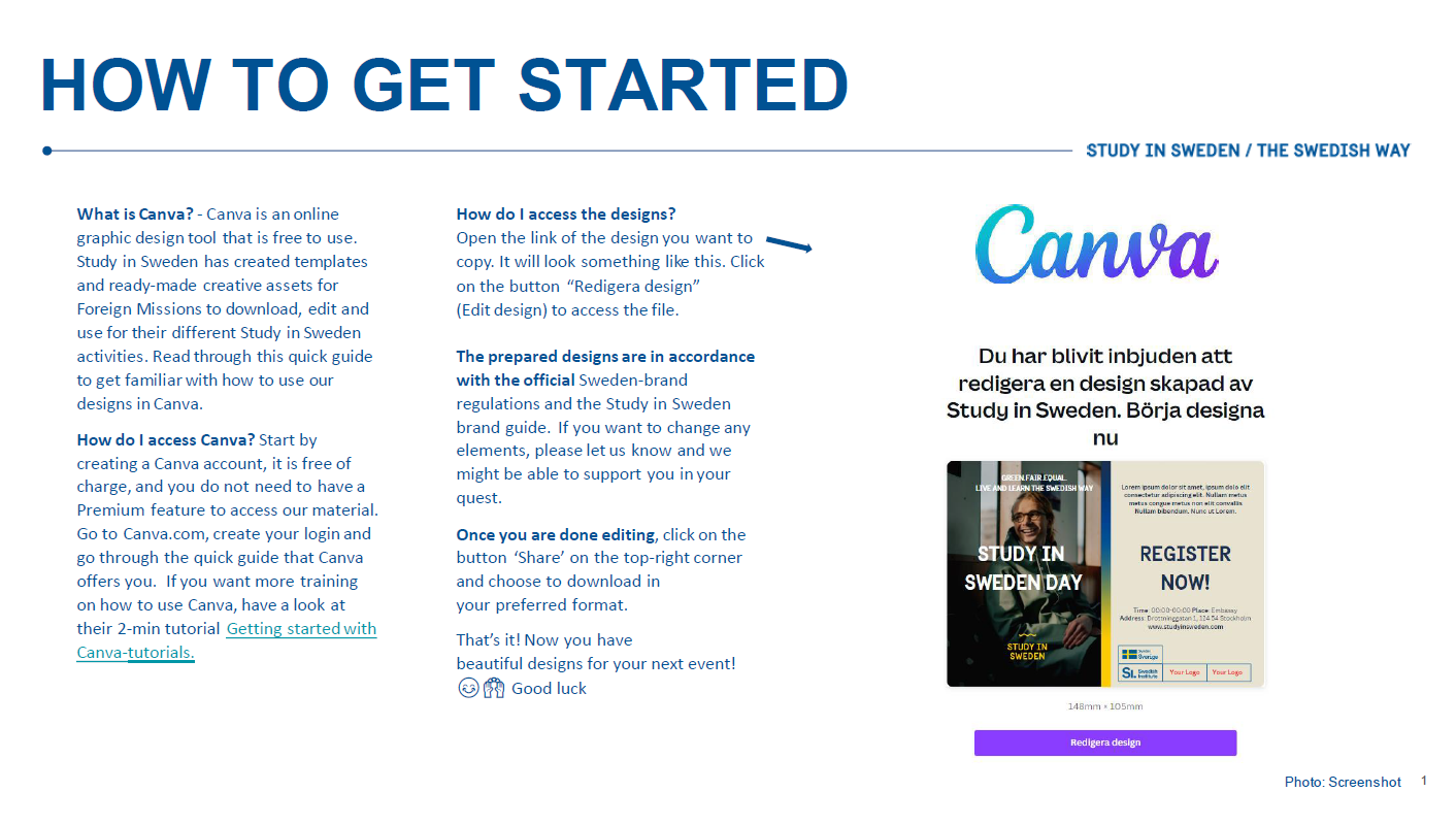 Should you need any advice, don’t hesitate to contact the Study in Sweden team. You can find contact information and more promotional material in the toolkit Study in Sweden .