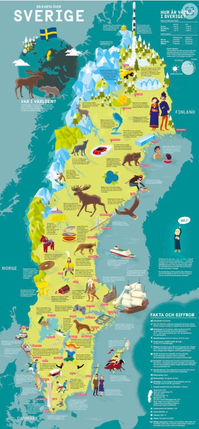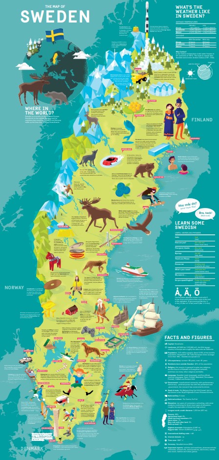 Sweden – folder for school children How to use the material This informative and generously illustrated folder, ‘One year in Sweden’, describes everyday life in Sweden for schoolchildren between ages eight and ten. The folder will give you facts about population, geography and climate, and a map of Sweden. The folder also gives you a taste of everyday life in Sweden from children’s perspective.