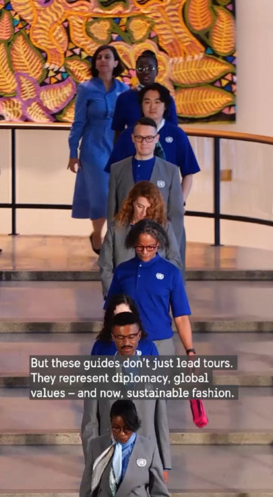 The guides at the UN headquarters in New York receive around half a million people every year. These guides not only lead tours, they also represent diplomacy and global values – now with a new sustainable look.
