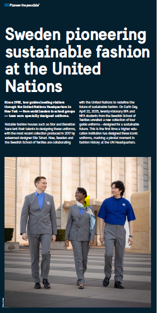On Earth Day, 22 April 2025, the collection will be unveiled at the United Nations Headquarters in New York. This is the first time a higher education institution has designed and developed tour guide uniforms for the UN Headquarters. It is also the first time there has been a focus on sustainability.