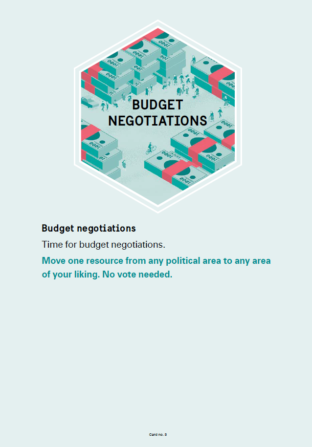 Floor game (preview) Download roll-up (PDF 855.3 KB) Roll-up in low resolution Download game instructions folder (PDF 553.4 KB) Game instructions folder in low resolution Download folder text for translation (DOCX 35.9 KB) Folder text for translation Download event cards (top side) (PDF 204.7 KB) Event cards, top side, in low resolution Download event cards (text side) (PDF 1.8 MB) Event cards, text side, in low resolution Download party sheets (PDF 835.4 KB) Party sheets in low resolution Download game board hexagons (PDF 5.6 MB) Game board hexagons in low resolution Download priority cards (PDF 59 KB) Priority cards in low resolution Download game text for translation (ZIP 59 KB) Game text for translation The floor game material is also available as high-resolution PDF print files in English. You can use the word files for translation. When you translate the material to your local language, always contact the Swedish Institute for information about existing translations and help creating high-resolution PDF print files.