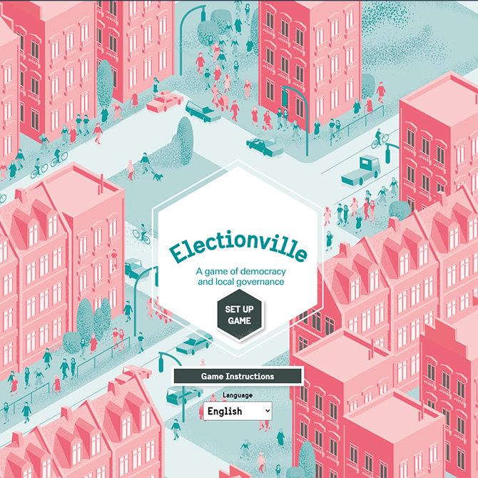 Online game Download instructions for the online game (PDF 2.7 MB) Online game instructions We have created a fully adapted online version of Electionville. Electionville online has all the features included in the Electionville floor game, making it ideal as either a complementary build-on component together with the original material, or as an individual educational tool in its own right.