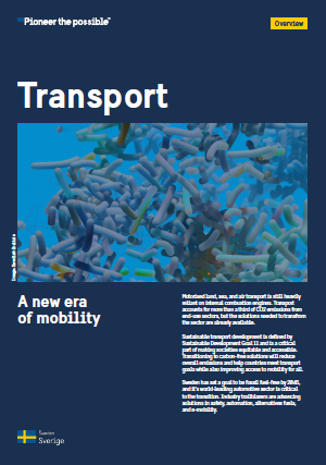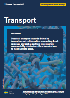 Photo: Sofia Sabel/imagebank.sweden.se About the transport sector Sweden has set a goal to be fossil fuel-free by 2045, and it’s world-leading automotive sector is critical to the transition. Industry trailblazers are advancing solutions in safety, automation, alternatives fuels, and e-mobility. You can use this toolkit to attract trade and investment within the transport sector.